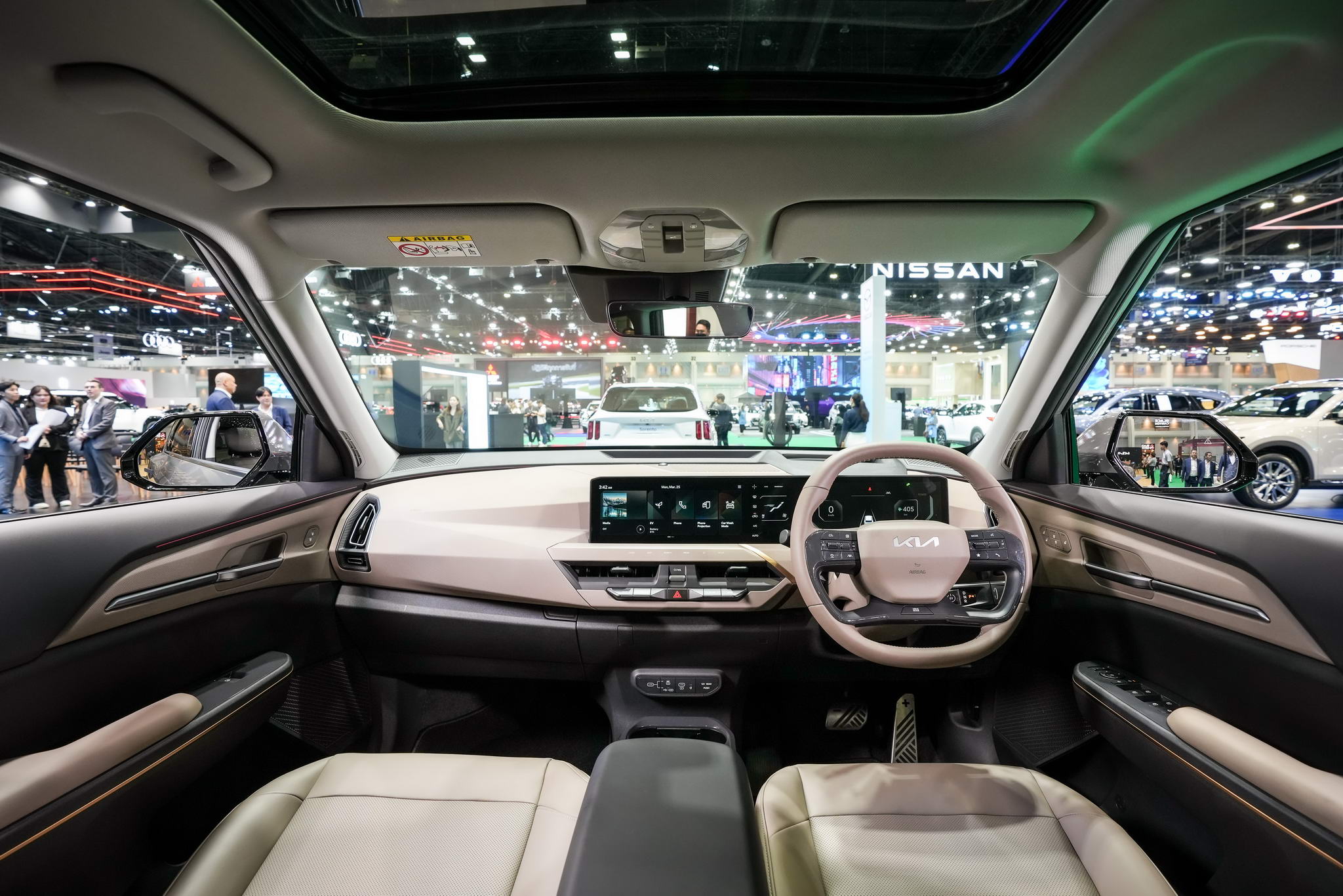 A Kia EV5 többféle üléskonfigurációt és különféle ülésanyagokat kínál, környezetbarát újrahasznosított PET szövettel és Bio-PU bőrborítással, hogy megfeleljen az évezredes családok igényeinek. Az Earth Exkluzív AWD- ben változat, van a vezető pihenőülés négy üzemmódú masszázs funkcióval, három fokozatú fűtéssel és szellőző funkcióval, valamint állítható lábtámasz . A középkonzol hűtő- és fűtődoboz ételmelegítéshez és italhűtéshez is elérhető az Earth Exclusive AWD -ben modell . Melegen tudja tartani a teát , a kávét és az elviteleket , valamint hűvösen tárolja a jeges italokat és a vizet a kempingezéshez. Minden Kia EV5 változathoz több asztalos csomagtartó is tartozik, amely azonnal étkezőasztallá alakítható, és lehetővé teszi a családok számára a kabinban történő étkezést vagy a szabadban való étkezést. Ráadásul a Kia EV5-ösök Az utasteret a legmodernebb infotainment- és kapcsolódási technológiával szerelték fel, amely fokozza a hatékonyságot és a kényelmet. A „panorámás széles kijelző” egy 12,3 hüvelykes információs és szórakoztató rendszerből , egy 12,3 hüvelykes digitális clusterből és egy 5 hüvelykes klímaberendezés-kijelzőből áll, amelyek széleskörű információkat nyújtanak a járművezetőknek. magával ragadó élményért . Az egyszerűsített menük megkönnyítik az elektromos járművekre jellemző funkciók használatát, és lehetővé teszik a járművezetők számára, hogy egy pillantással láthassák a hatótávolságot és az elektromos járművek töltési állapotát.